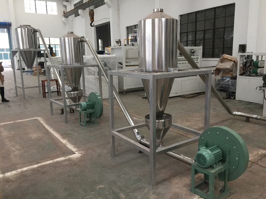 المواد الخام + المواد المضافة ← الخلط ← التغذية الناقلة ← تغذية النطاط ← الطارد اللولبي المزدوج المخروطي ← قطع الوجه الساخن ← فاصل الإعصار ← غربال الاهتزاز ← نظام النفخ ← قادوس التخزين ← تعبئة المنتج النهائي